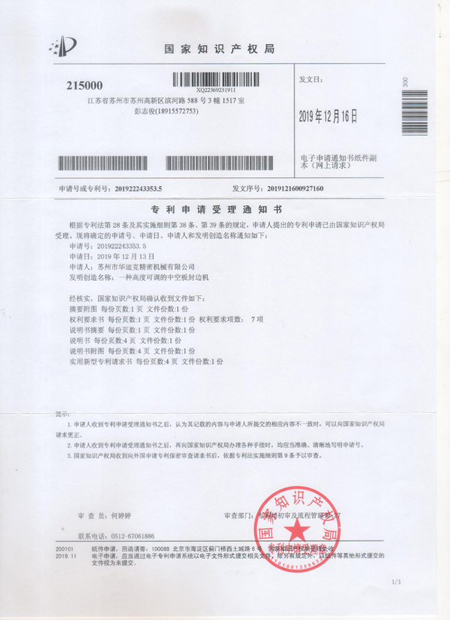 專利申請受理通知書201922243353.5